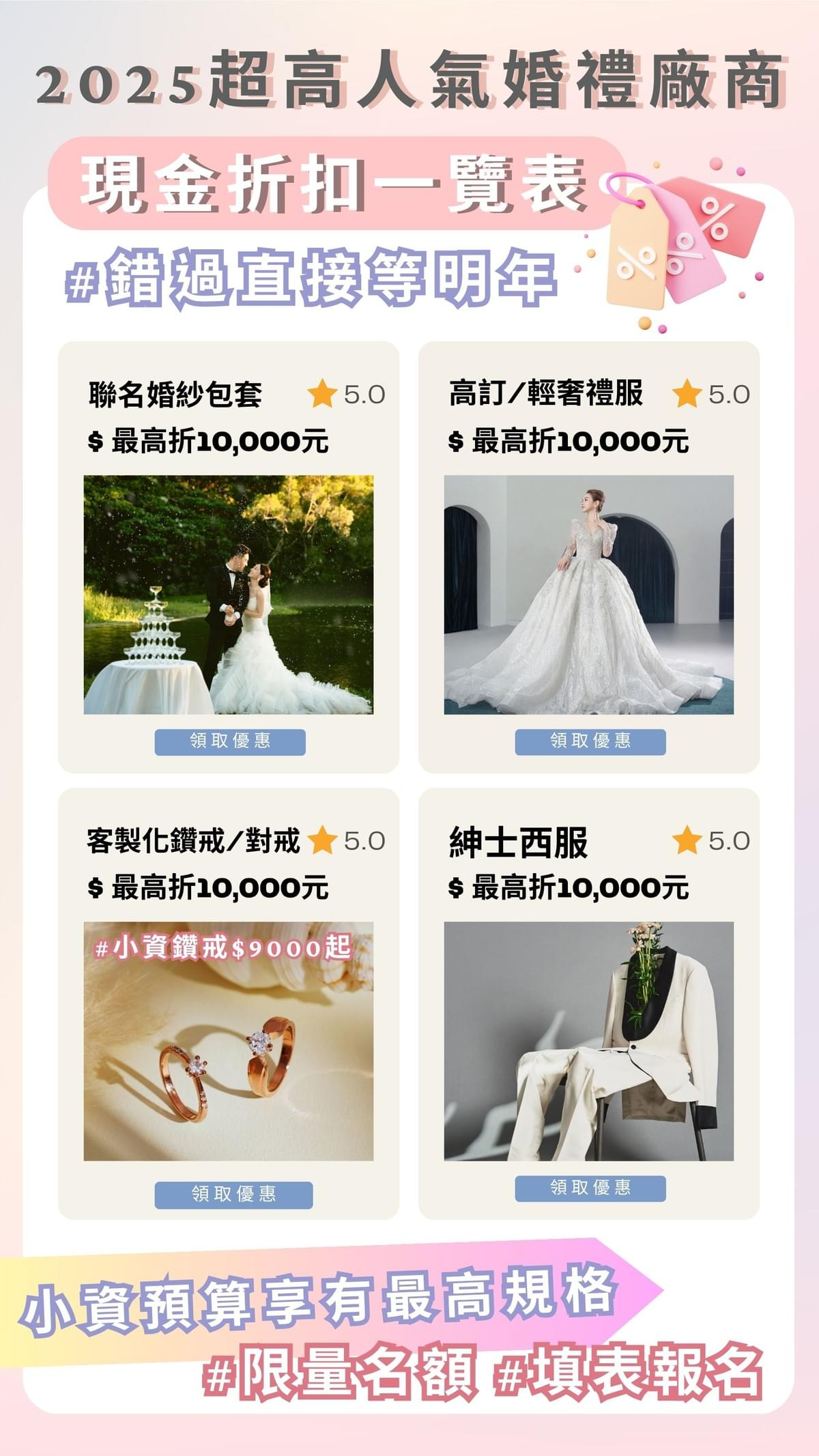 ✿ 其他婚禮品牌皆享有優惠—珠寶、喜餅、婚禮週邊